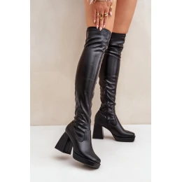 Přiléhavé dámské kozačky vyrobené z eko kůže, které dokonale zvýrazňují nohy. Usazené na stabilním sloupkovém podpatku, zajišťují eleganci a pohodlí. Svršek sahající nad koleno dodává šarm, zatímco čtvercové špičky dodávají moderní charakter. Model je bez zapínání, s dalším zipem, který usnadňuje obouvání. Stylové a ženské, skvělé pro různé příležitosti. Při výběru velikosti se řiďte tabulkou velikostí.