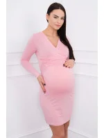 Přiléhavé šaty s průstřihem pod prsy v pudrově růžové barvě