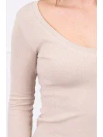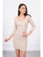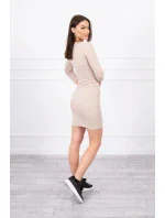 387-6 Přiléhavé šaty s obálkovým výstřihem a dlouhými rukávy - béžové