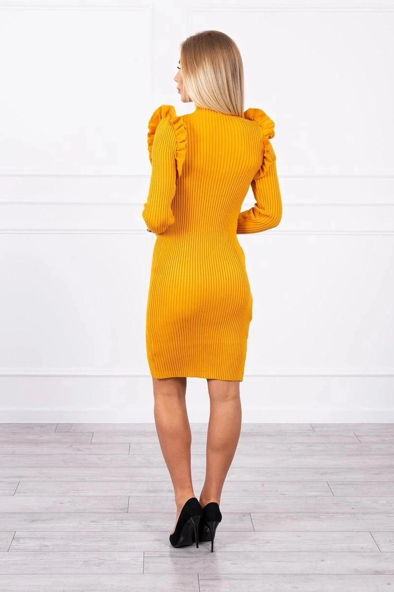 Přiléhavé svetrové šaty s knoflíky hořčicové barvy