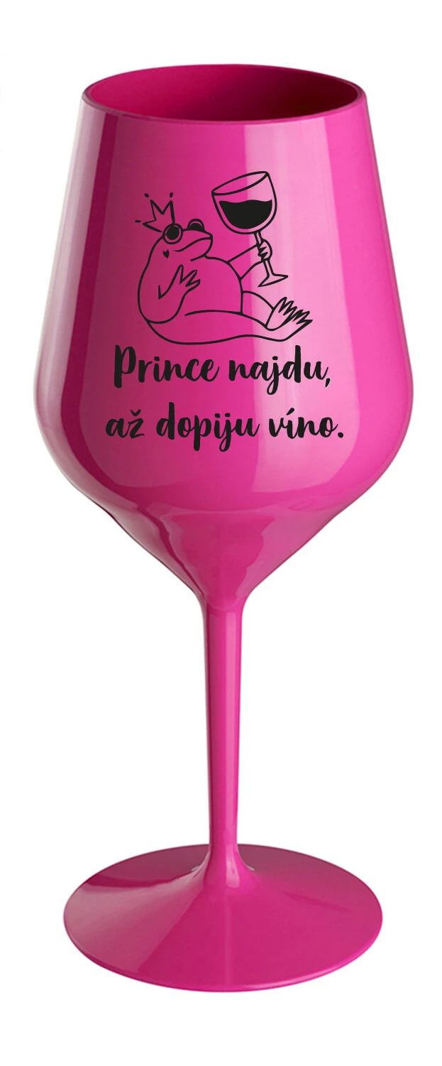 PRINCE NAJDU, AŽ DOPIJU VÍNO. - růžová nerozbitná sklenice na víno 470 ml