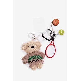 Přívěsek na klíče na kabelku medvídek v svetrku raketa s míčem hamburger Červený