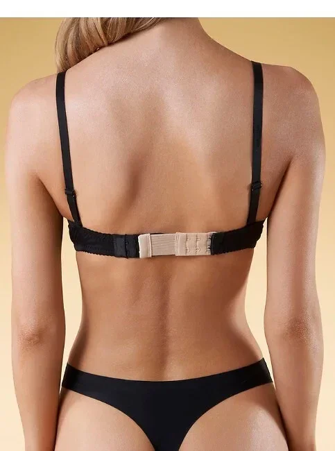 Prodlužovač představuje nejjednodušší způsob zvětšení obvodu podprsenky. Univerzální umístění háčků umožňuje připnout prodlužovač ke všem podprsenkám se standardním zapínáním.