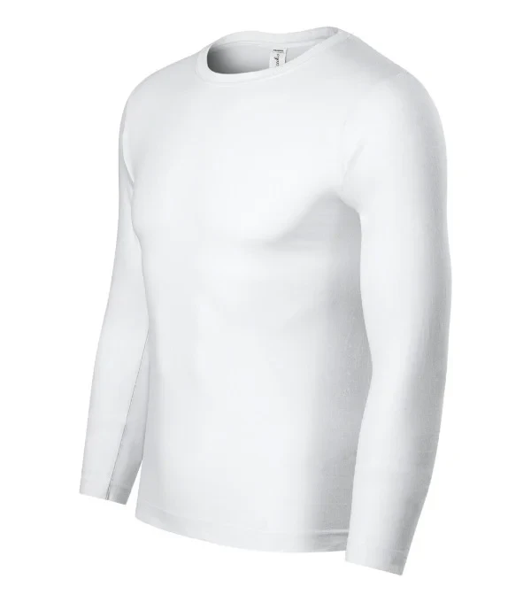 tubulární střih lem průkrčníku z žebrového úpletu 1:1 vnitřní část průkrčníku začištěna páskou z vrchového materiálu zpevnění ramenních švů páskou dlouhé rukávy odtrhávací etiketa