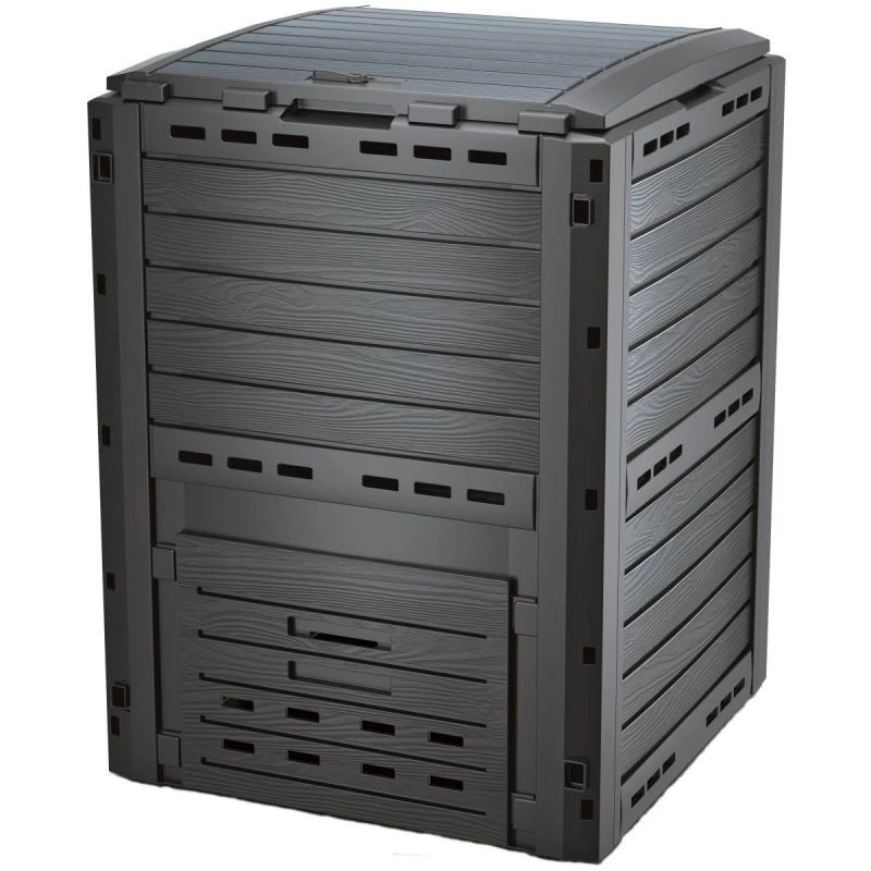 Uzavřená forma a ochrana v podobě víka omezí přístup případných živočichů k nashromážděnému odpadu a otvory zajistí potřebný přísun vzduchu. Spodní výklopná vrata, usnadní přístup k vyrobenému kompostu kdykoliv, i když je na dně nádoby, a speciální madlo zajišťující klapku, vám umožní pohodlně přehazovat odpad dovnitř! Je lehký a odolný vůči měnícím se povětrnostním podmínkám a bude vám sloužit mnoho let.