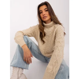 Béžový svetr s plédy a rolákem .