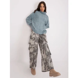 Tmavě mátový svetr s plédy a rolákem .