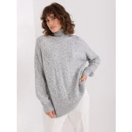 Šedý svetr s plédy v oversize střihu .