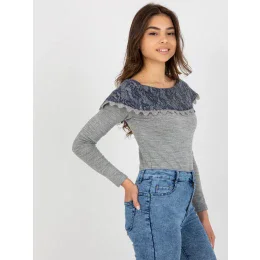 Šedá a tmavě modrá dámská halenka s krajkou .