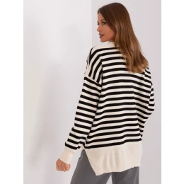 Dámský pletený svetr oversize v krémové a černé barvě.