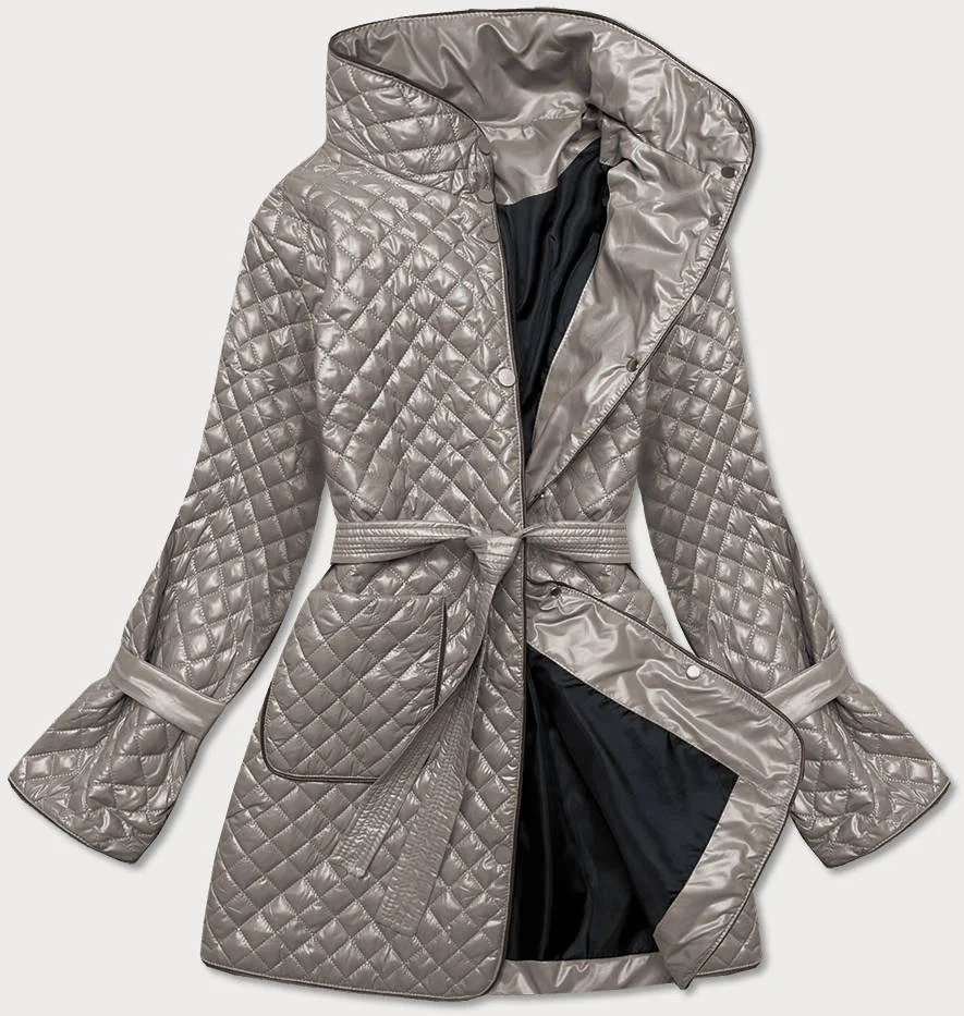 Prošívaná dámská bunda v barvě cappuccino s páskem (7262)