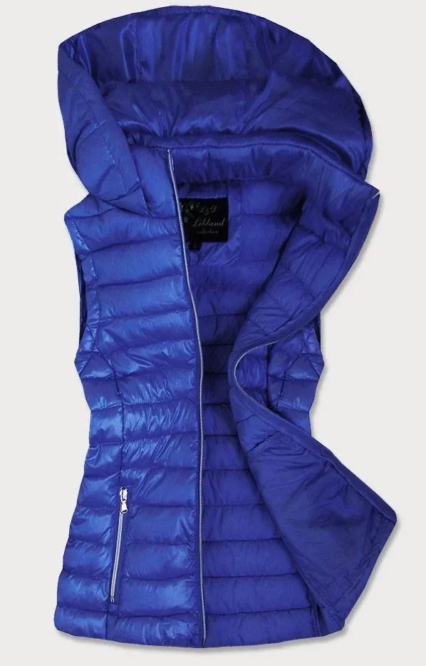 Prošívaná lesklá dámská vesta v chrpové barvě (7000)