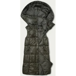 Jednoduchá dámská vesta v khaki barvě s kapucí (YP-22072-6)