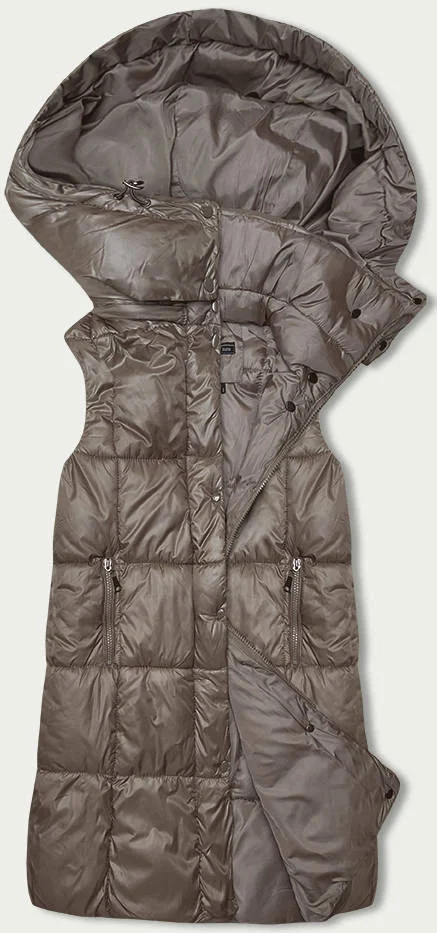 Jednoduchá dámská vesta v barvě mocca s kapucí (YP-22072-5)
