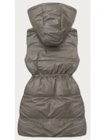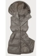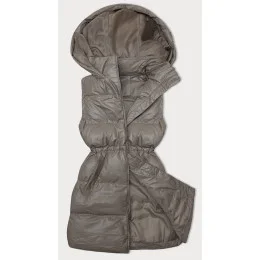Tmavě béžová jednoduchá dámská péřová vesta (5M3186-84)