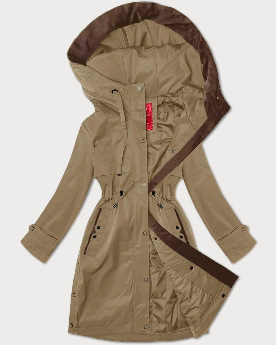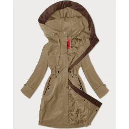 Tmavě béžová jednoduchá dámská bunda s kapucí LHD (LHD-24590)