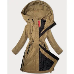 Tmavě béžová jednoduchá dámská bunda s kapucí LHD (LHD-24592)