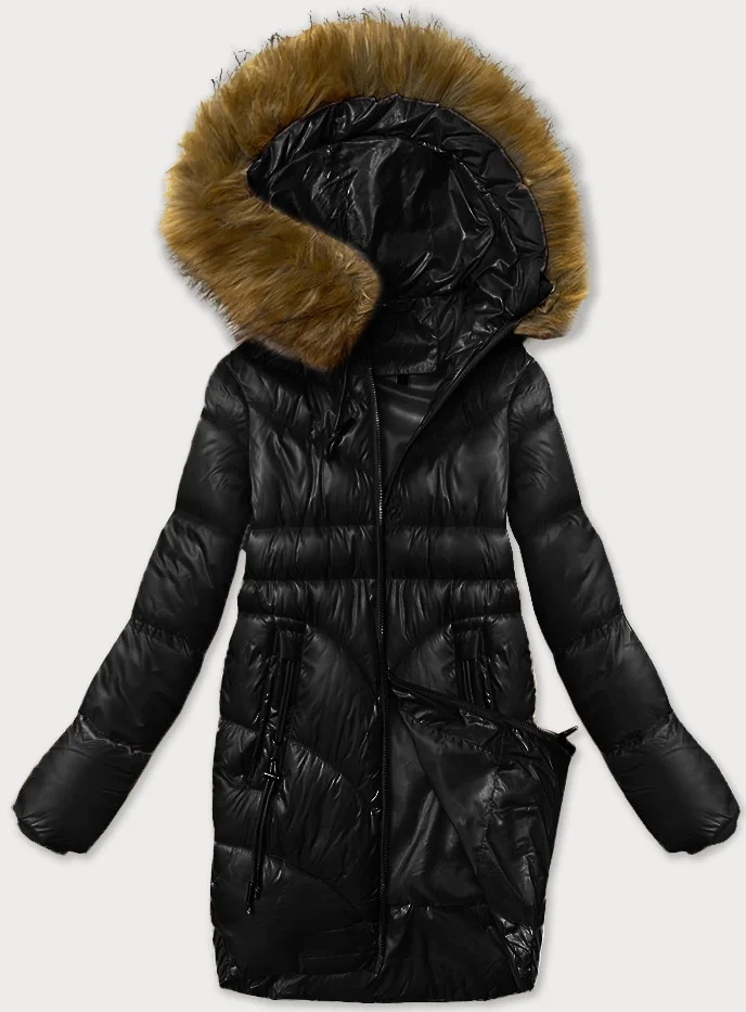 Jednoduchá černá dámská zimní bunda s ozdobnými kapsami S'west (B8259-1)