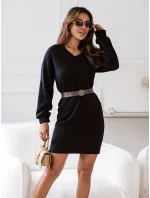Šaty mají výstřih ve tvaru písmene "V". Dlouhé rukávy jsou olemované stahovacími lemy. Model má délku mini.