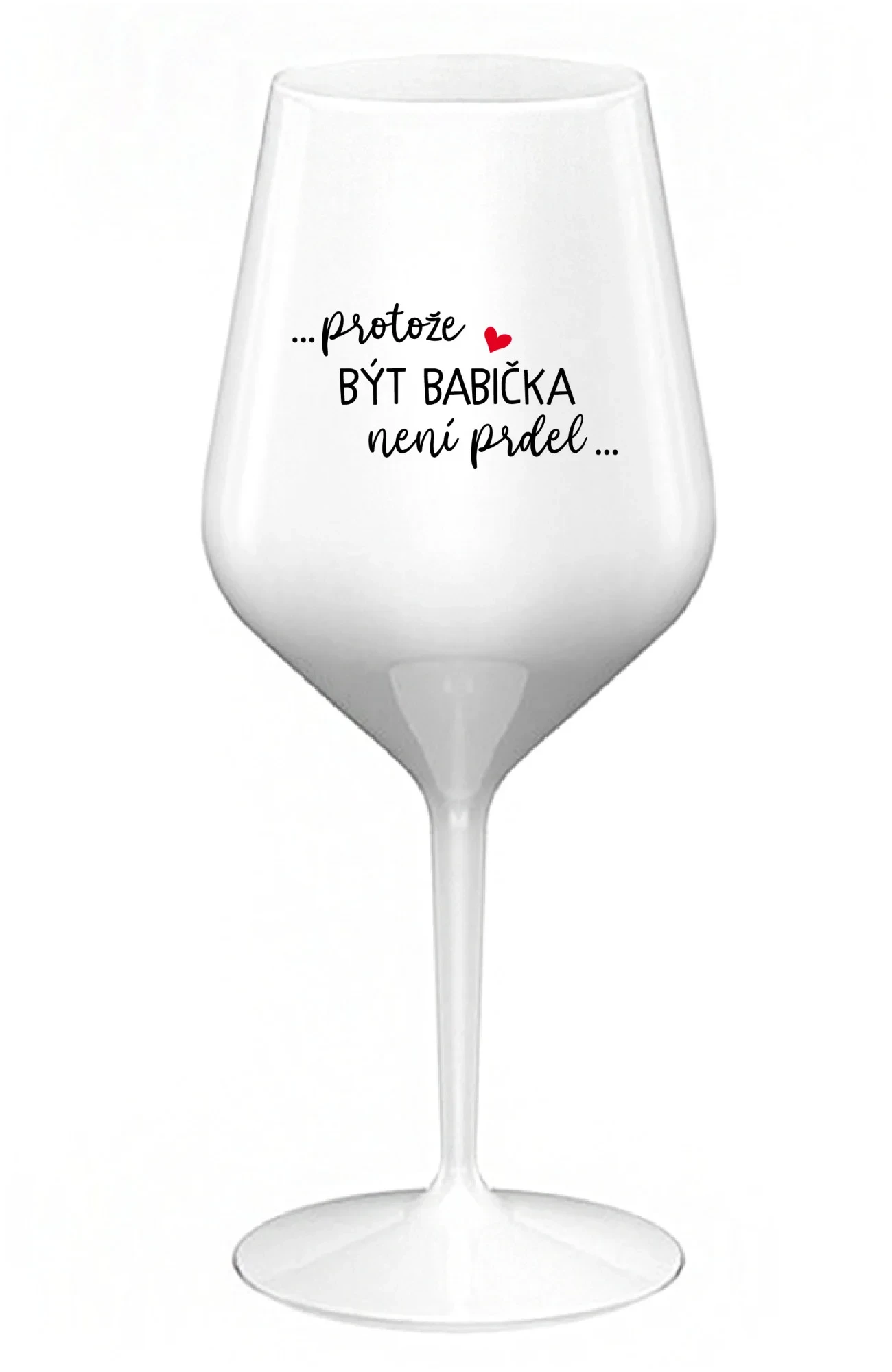 ...PROTOŽE BÝT BABIČKA NENÍ PRDEL.. - bílá nerozbitná sklenice na víno 470 ml