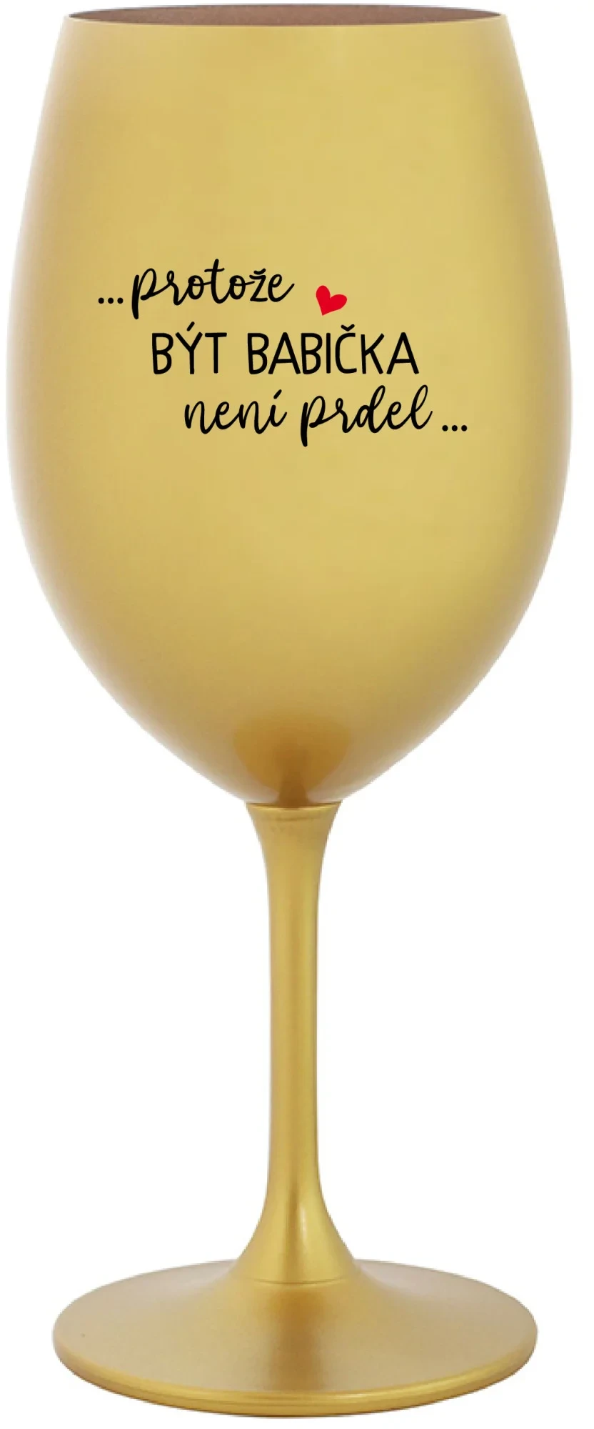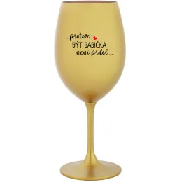 Vinná zlatá sklenice s originálním motivem ...PROTOŽE BÝT BABIČKA NENÍ PRDEL.. je krásným a osobitým dárkem, které ale využijete i Vy sami třeba ve chvílích, kdy si budete chtít zpříjemnit náročný den. Tyto originální vinné sklenice jsou totiž nejen pro výjimečné události, ale i pro běžné večery, které si chcete zpříjemnit sklenkou dobrého vína. Jistě proto potěší každého milovníka vína, i toho, kdo si umí svůj život vychutnat plnými doušky.