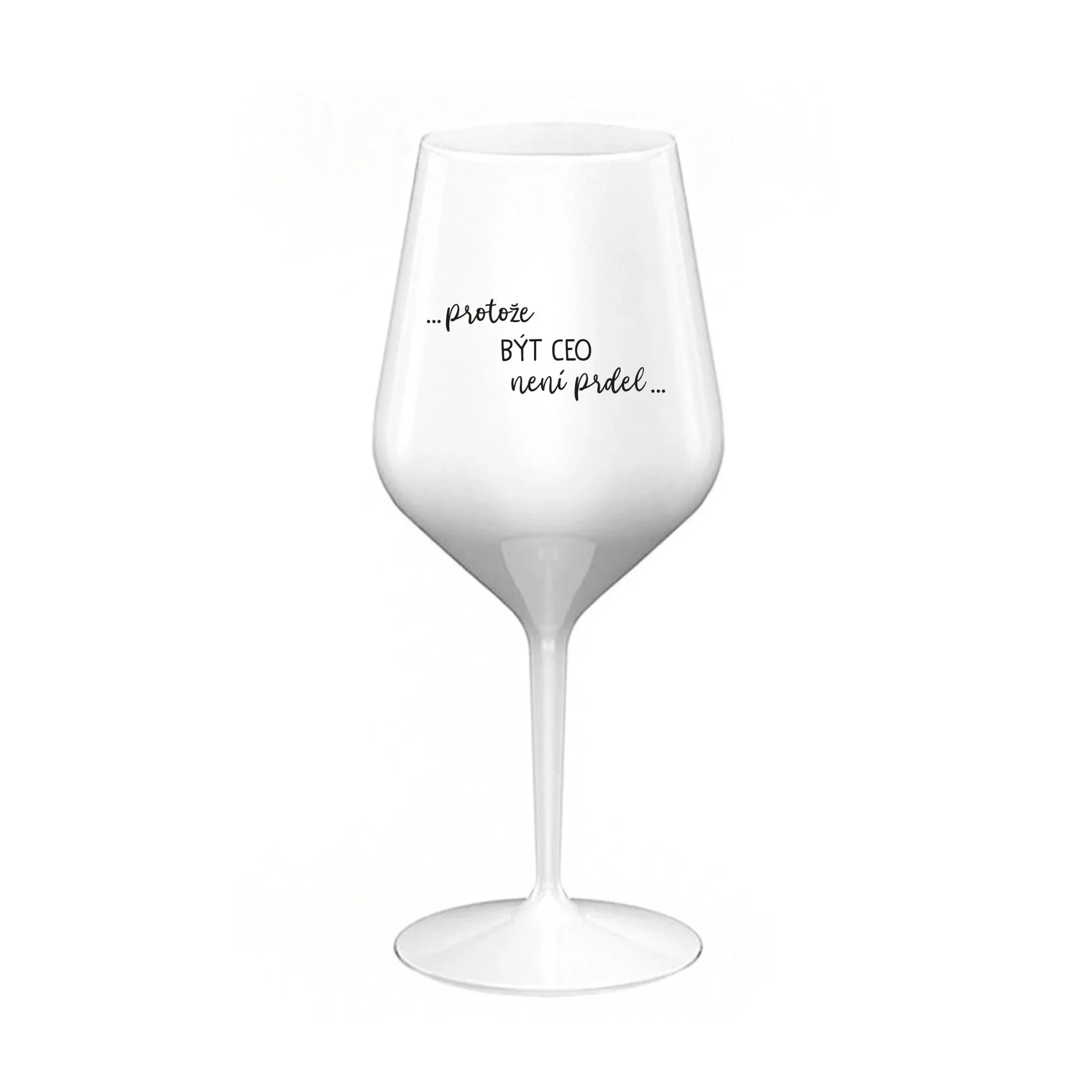 PROTOŽE BÝT CEO NENÍ PRDEL - bílá nerozbitná sklenice na víno 470 ml