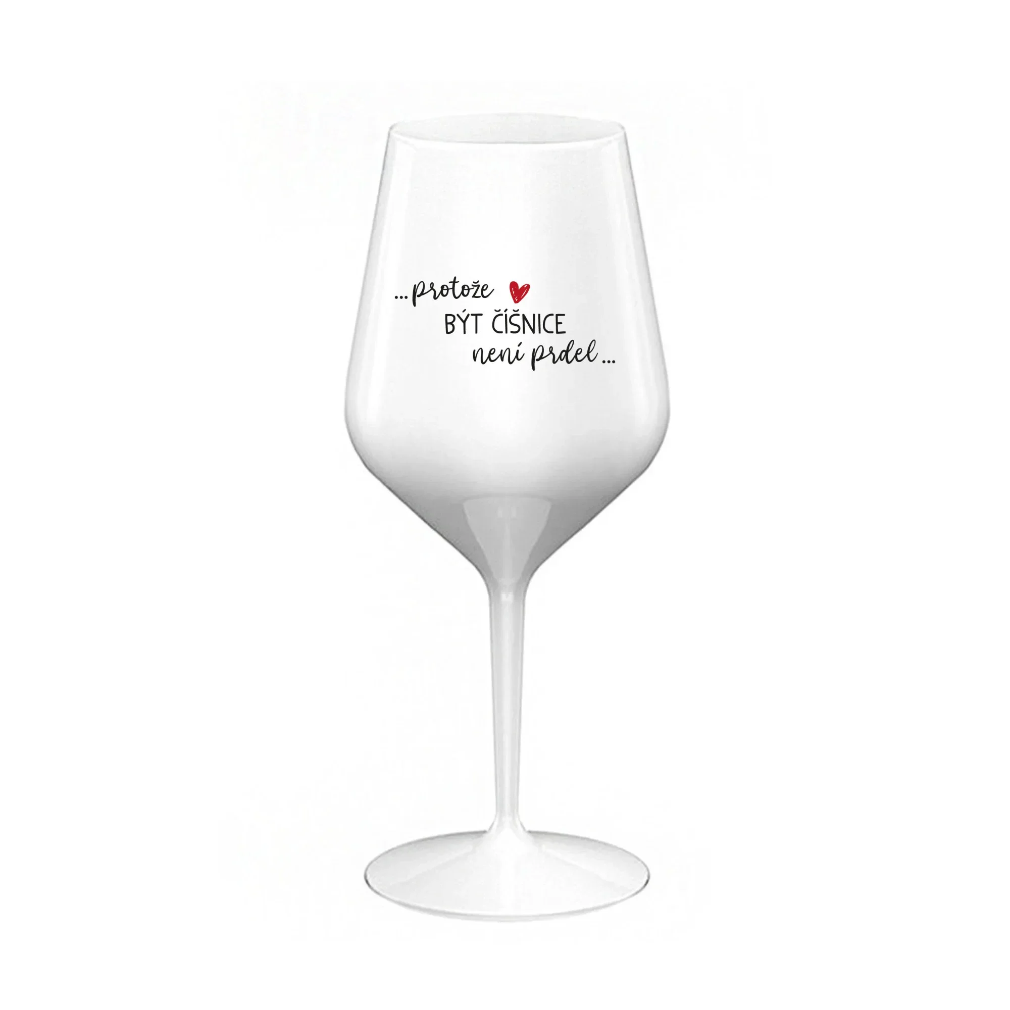 PROTOŽE BÝT ČÍŠNICE NENÍ PRDEL - bílá nerozbitná sklenice na víno 470 ml