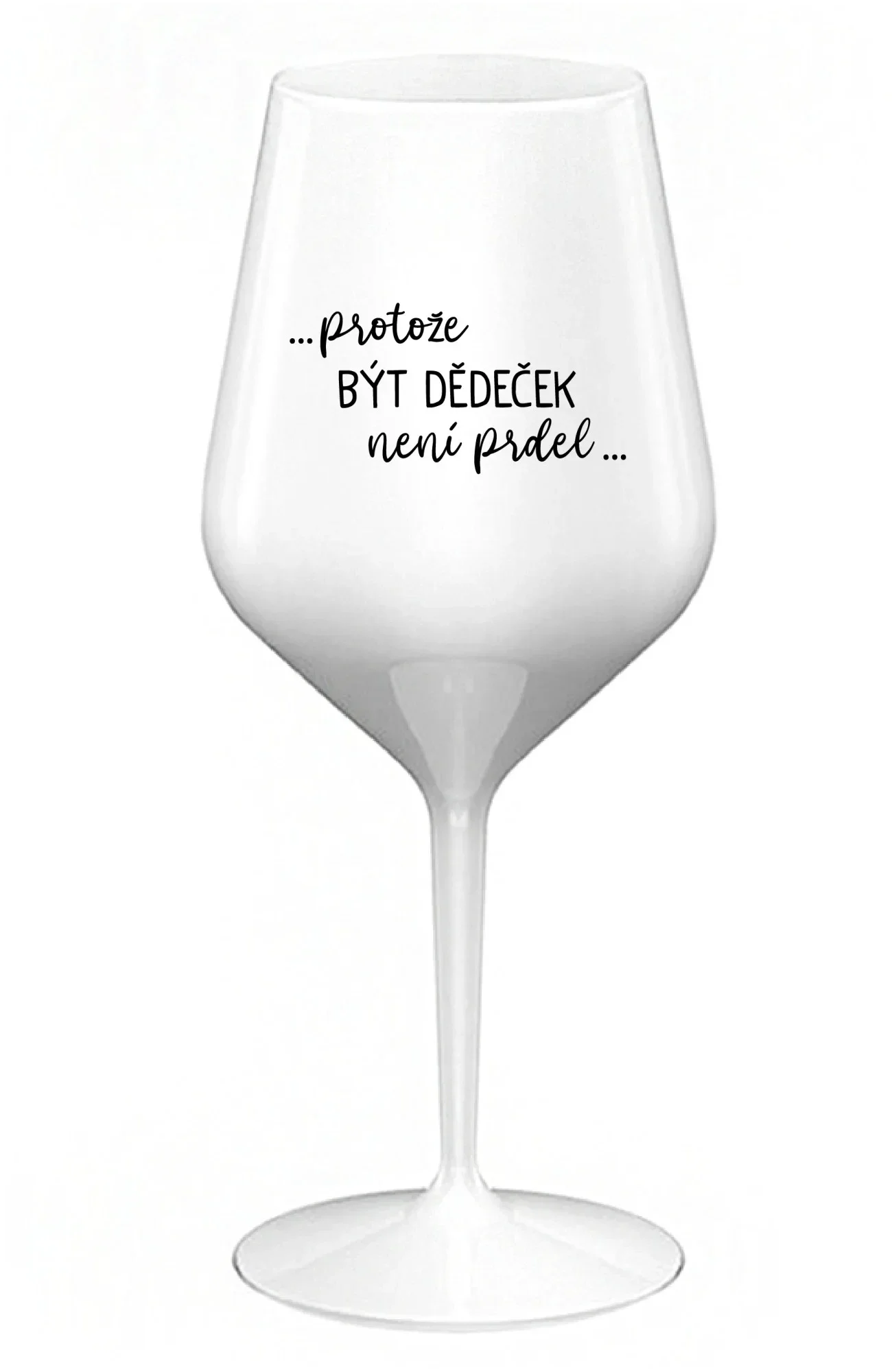 ...PROTOŽE BÝT DĚDEČEK NENÍ PRDEL.. - bílá nerozbitná sklenice na víno 470 ml