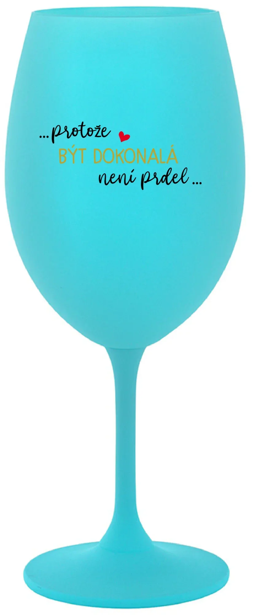 ...PROTOŽE BÝT DOKONALÁ NENÍ PRDEL... - tyrkysová sklenice na víno 350 ml