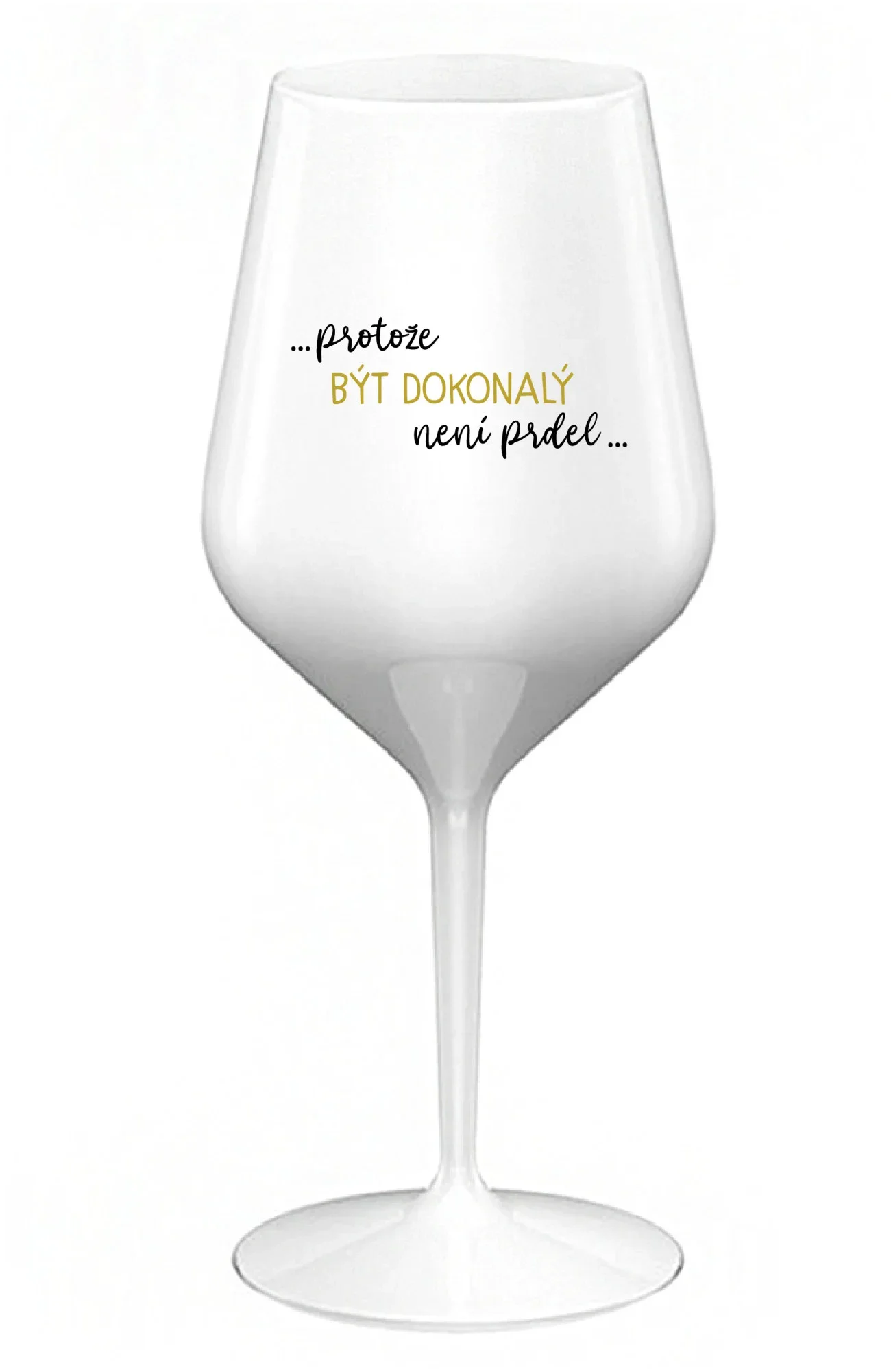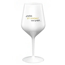 ...PROTOŽE BÝT DOKONALÝ NENÍ PRDEL... - bílá nerozbitná sklenice na víno 470 ml