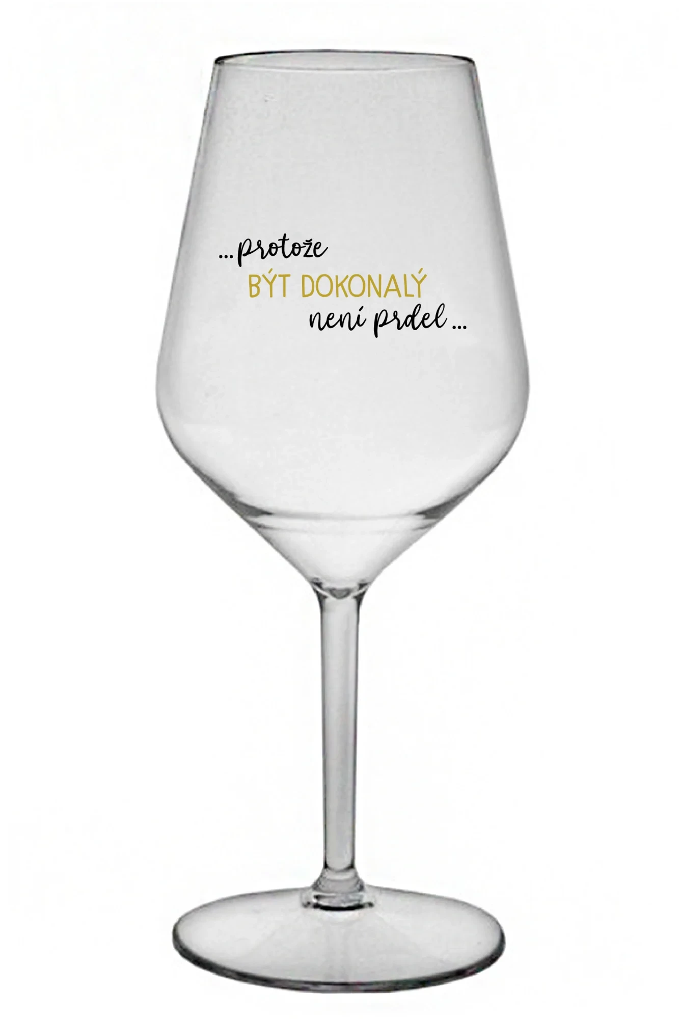 ...PROTOŽE BÝT DOKONALÝ NENÍ PRDEL... - čirá nerozbitná sklenice na víno 470 ml