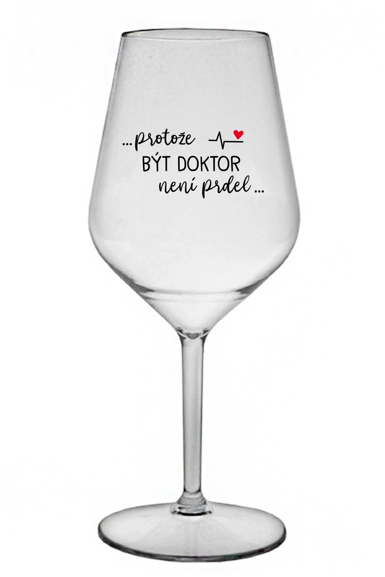 ...PROTOŽE BÝT DOKTOR NENÍ PRDEL... - čirá nerozbitná sklenice na víno 470 ml