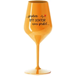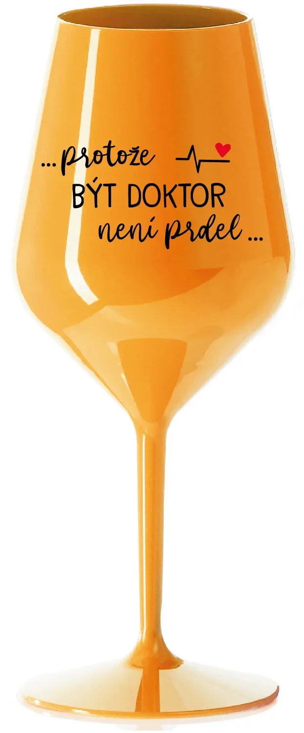 ...PROTOŽE BÝT DOKTOR NENÍ PRDEL... - oranžová nerozbitná sklenice na víno 470 ml