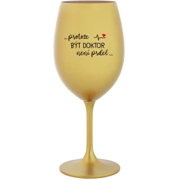 Vinná zlatá sklenice s originálním motivem ...PROTOŽE BÝT DOKTOR NENÍ PRDEL... je krásným a osobitým dárkem, které ale využijete i Vy sami třeba ve chvílích, kdy si budete chtít zpříjemnit náročný den. Tyto originální vinné sklenice jsou totiž nejen pro výjimečné události, ale i pro běžné večery, které si chcete zpříjemnit sklenkou dobrého vína. Jistě proto potěší každého milovníka vína, i toho, kdo si umí svůj život vychutnat plnými doušky.