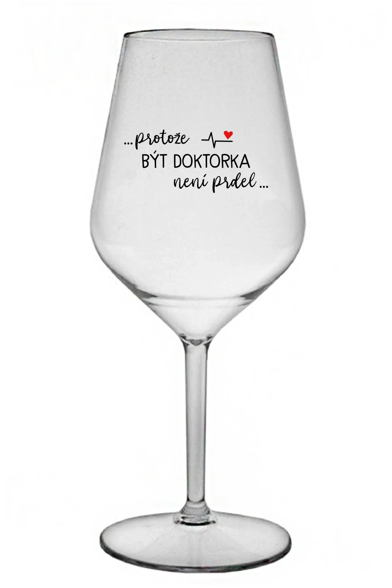 ...PROTOŽE BÝT DOKTORKA NENÍ PRDEL... - čirá nerozbitná sklenice na víno 470 ml