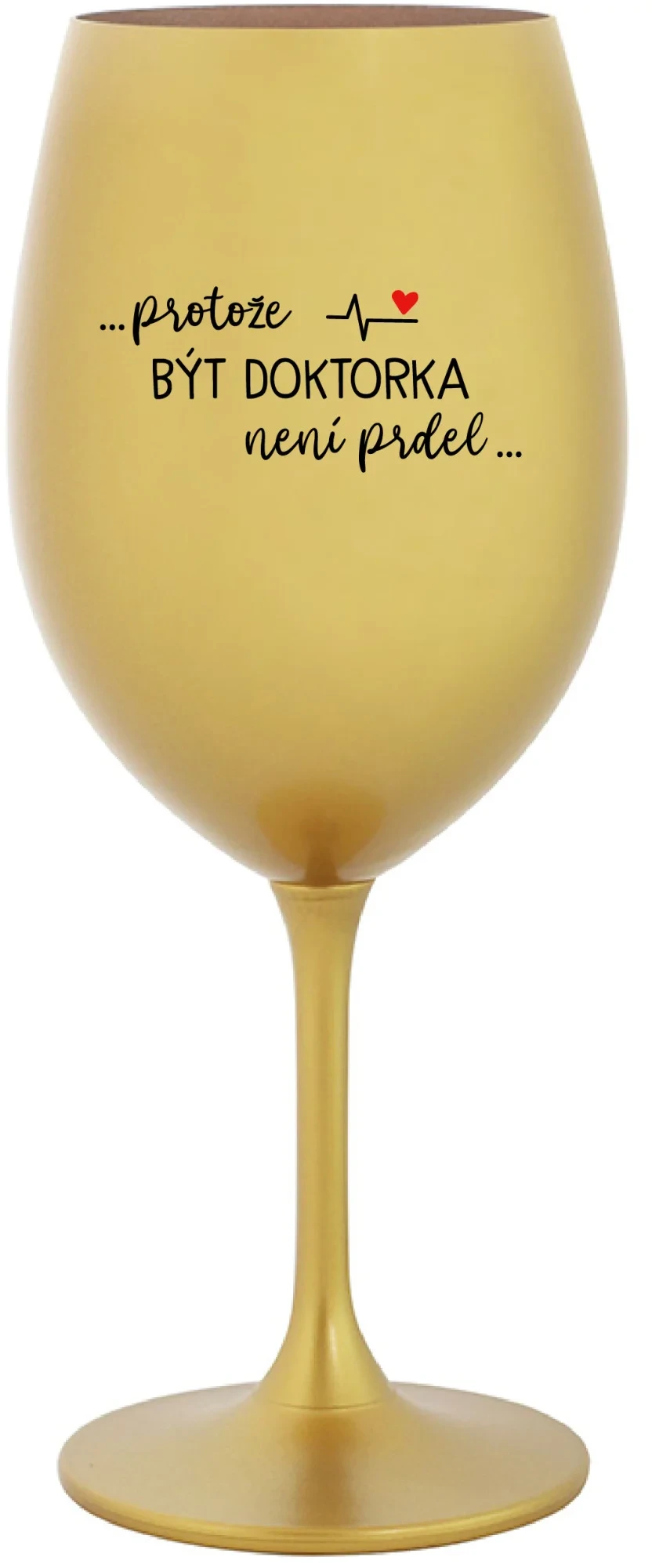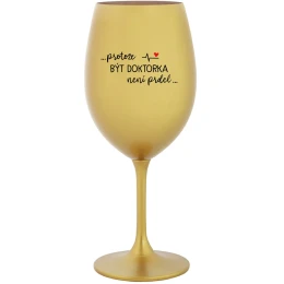 Vinná zlatá sklenice s originálním motivem ...PROTOŽE BÝT DOKTORKA NENÍ PRDEL... je krásným a osobitým dárkem, které ale využijete i Vy sami třeba ve chvílích, kdy si budete chtít zpříjemnit náročný den. Tyto originální vinné sklenice jsou totiž nejen pro výjimečné události, ale i pro běžné večery, které si chcete zpříjemnit sklenkou dobrého vína. Jistě proto potěší každého milovníka vína, i toho, kdo si umí svůj život vychutnat plnými doušky.
