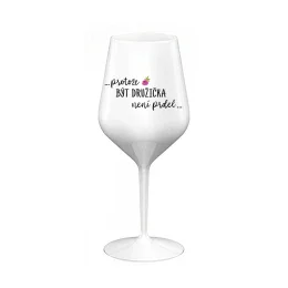 ...PROTOŽE BÝT DRUŽIČKA NENÍ PRDEL... - bílá nerozbitná sklenice na víno 470 ml