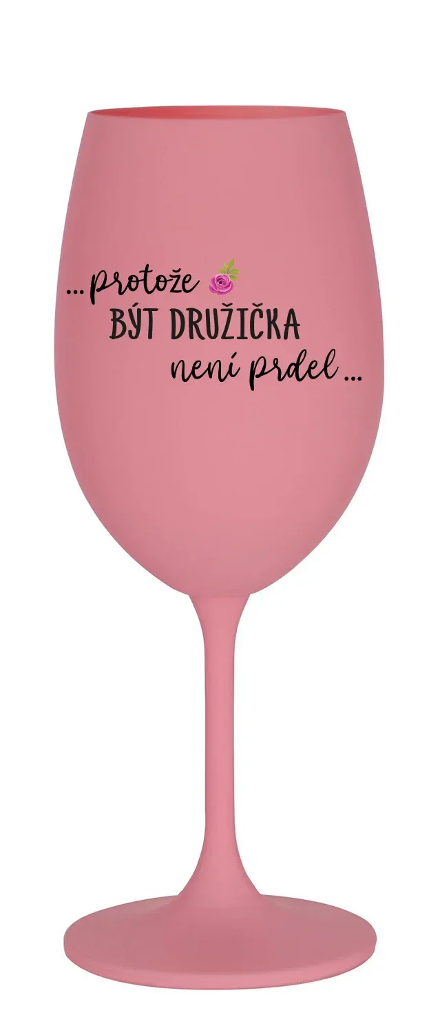 ...PROTOŽE BÝT DRUŽIČKA NENÍ PRDEL... - růžová sklenice na víno 350 ml