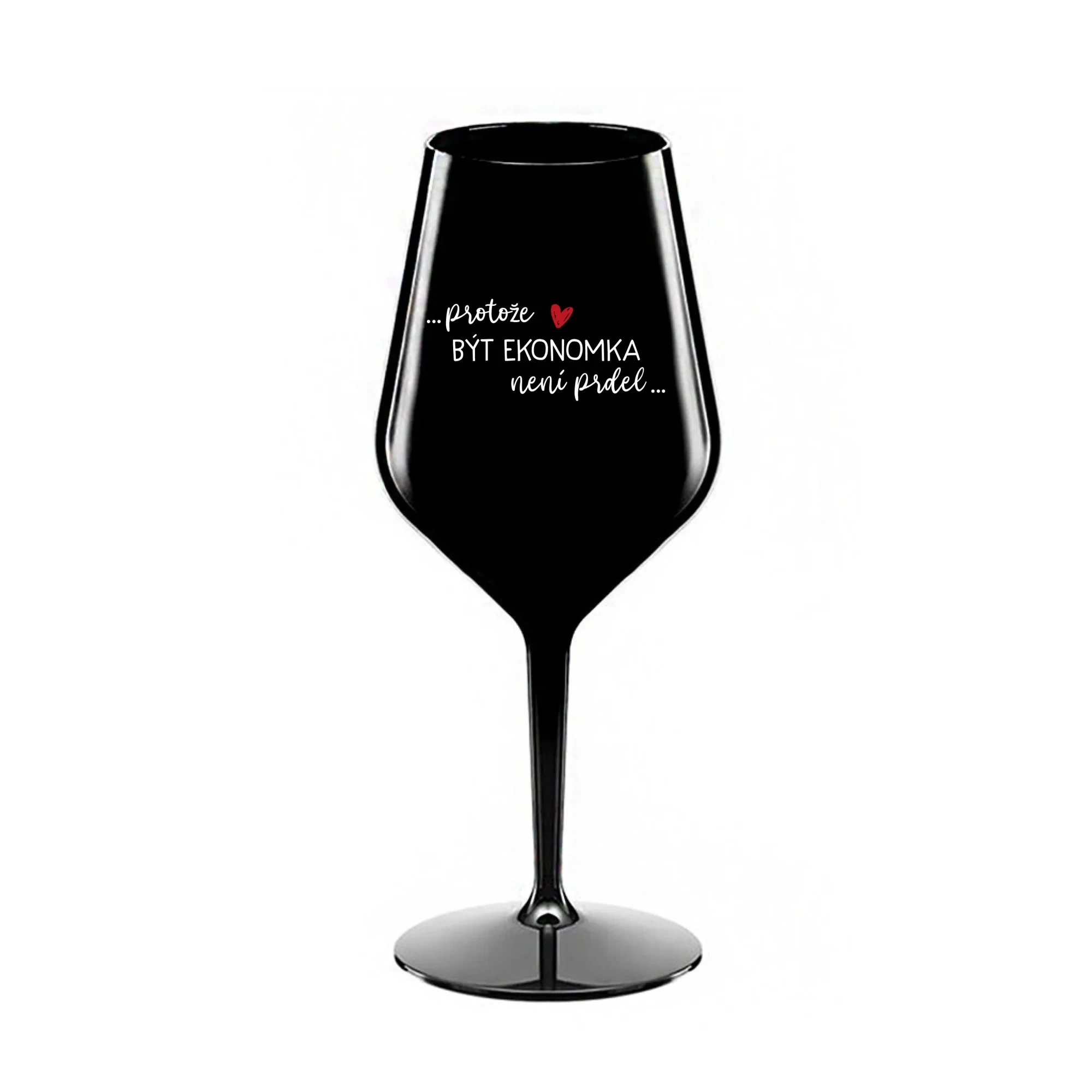 PROTOŽE BÝT EKONOMKA NENÍ PRDEL - černá nerozbitná sklenice na víno 470 ml