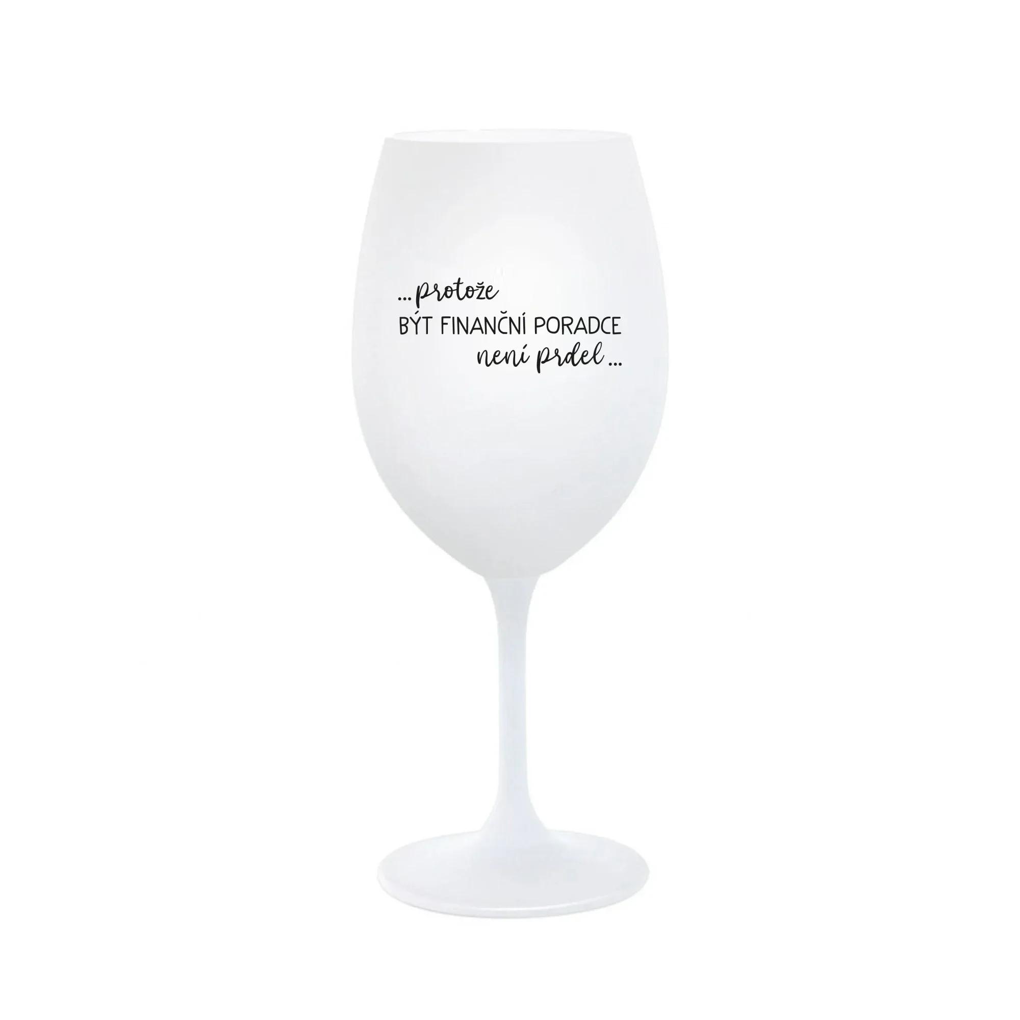 PROTOŽE BÝT FINANČNÍ PORADCE NENÍ PRDEL - bílá sklenice na víno 350 ml