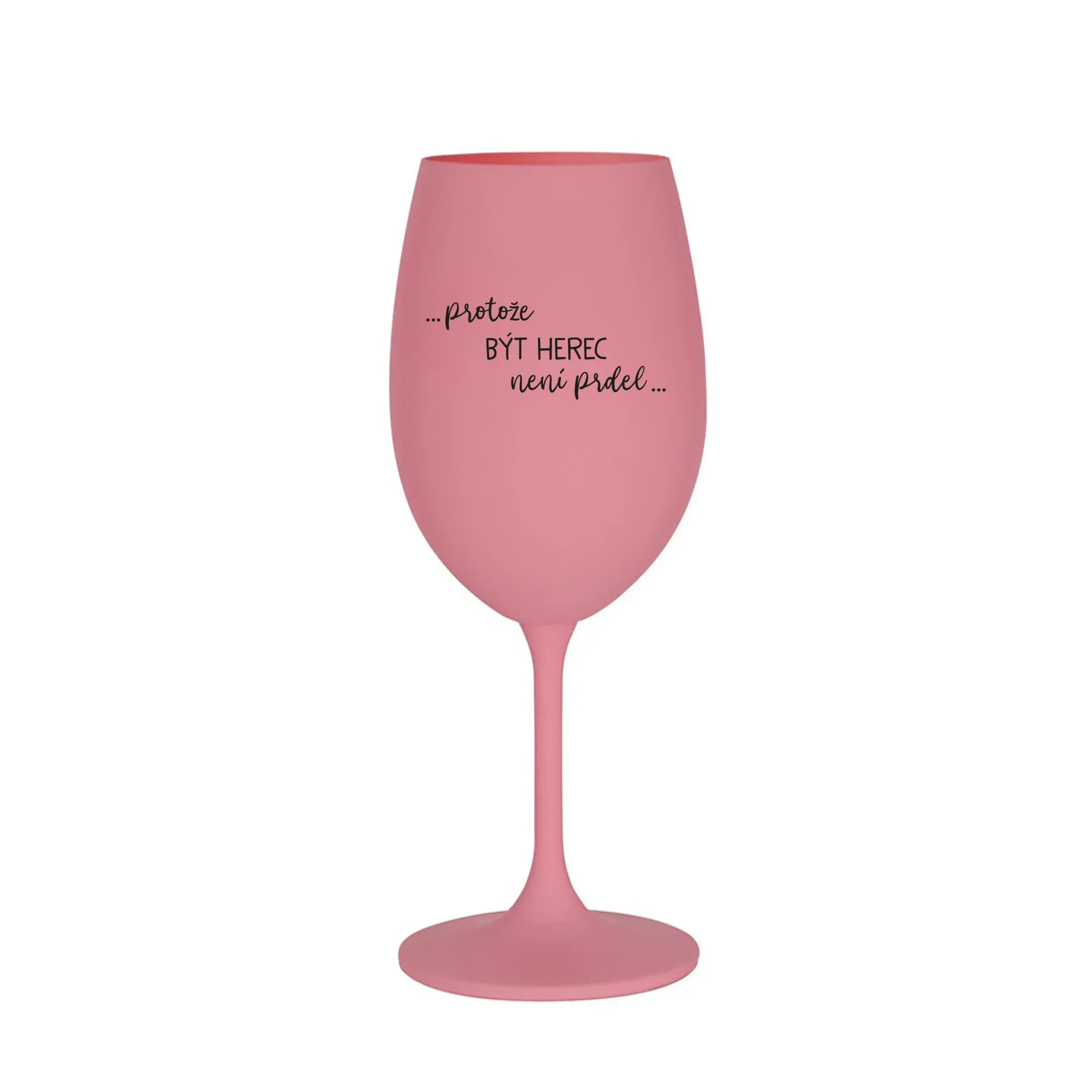 PROTOŽE BÝT HEREC NENÍ PRDEL - růžová sklenice na víno 350 ml