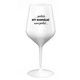 ...PROTOŽE BÝT NORMÁLNÍ NENÍ PRDEL... - bílá nerozbitná sklenice na víno 470 ml