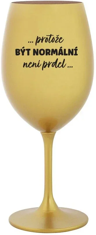 Vinná zlatá sklenice s originálním motivem ...PROTOŽE BÝT NORMÁLNÍ NENÍ PRDEL... je krásným a osobitým dárkem, které ale využijete i Vy sami třeba ve chvílích, kdy si budete chtít zpříjemnit náročný den. Tyto originální vinné sklenice jsou totiž nejen pro výjimečné události, ale i pro běžné večery, které si chcete zpříjemnit sklenkou dobrého vína. Jistě proto potěší každého milovníka vína, i toho, kdo si umí svůj život vychutnat plnými doušky.
