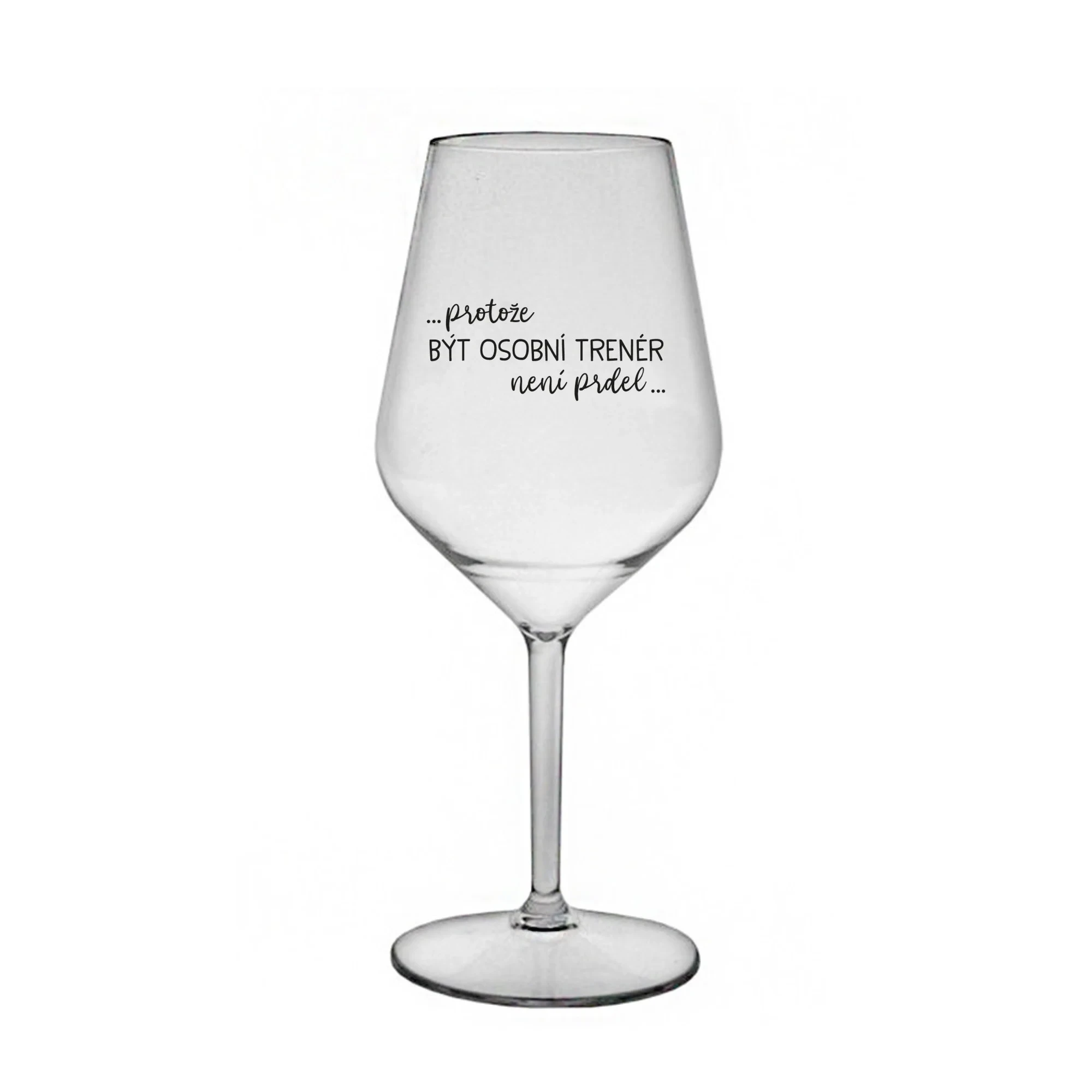 PROTOŽE BÝT OSOBNÍ TRENÉR NENÍ PRDEL - čirá nerozbitná sklenice na víno 470 ml