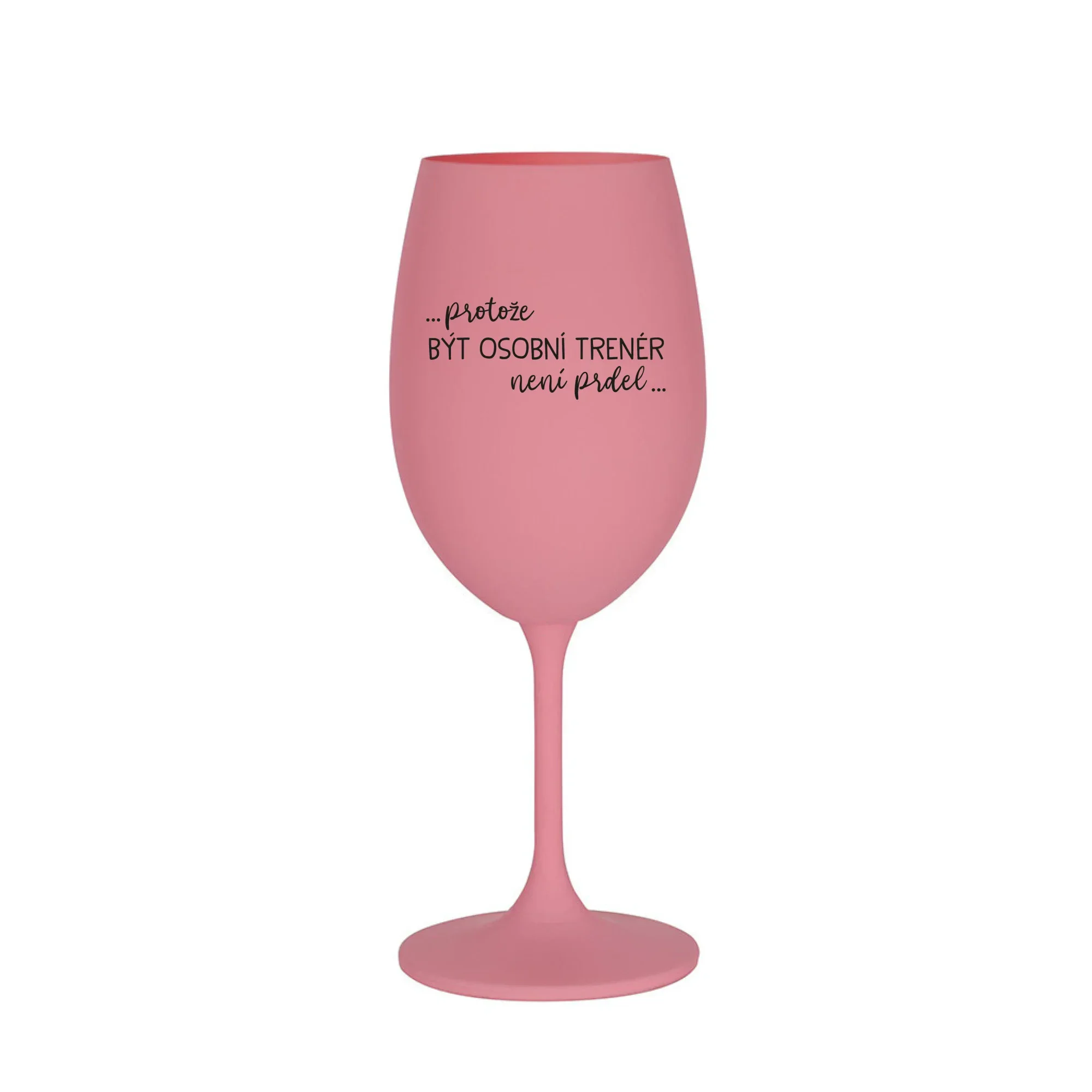 PROTOŽE BÝT OSOBNÍ TRENÉR NENÍ PRDEL - růžová sklenice na víno 350 ml