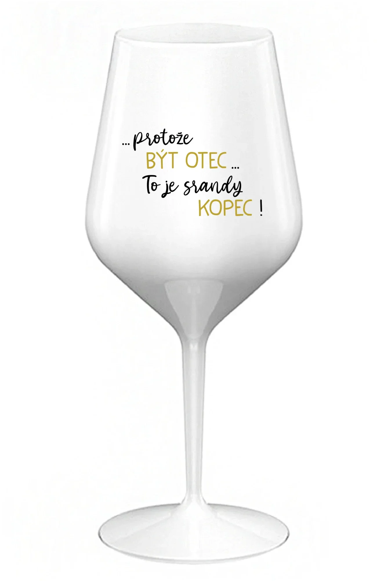 ...PROTOŽE BÝT OTEC...TO JE SRANDY KOPEC! - bílá nerozbitná sklenice na víno 470 ml