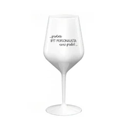 Nerozbitná bílá vinná sklenice s motivem PROTOŽE BÝT PERSONALISTA NENÍ PRDEL je skvělá na zahradu, pláž, výlet, piknik a parádu udělá i při kempování. Jelikož je vyrobená z kvalitního polykarbonátu je de facto nerozbitná. Je to luxusní kousek, s nímž si víno můžete vychutnat prostě kdekoliv. Mají ergonomický tvar, který příjemně padne do ruky a protože je lehká, usnadňuje to její přenášení. Je snadno skladovatelná a lehce se čistí. Díky svému designu si s ní můžete vychutnat doopravdy kdekoliv bezproblémové pití výborného vína. Materiál PP. Vyrobené s láskou v ČR