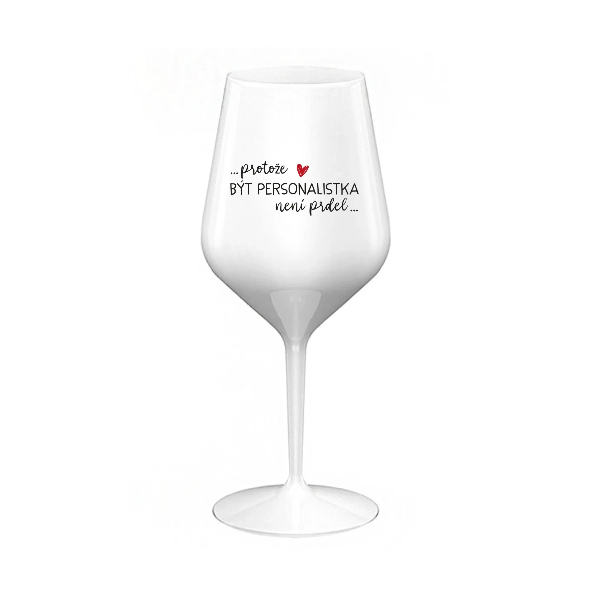 PROTOŽE BÝT PERSONALISTKA NENÍ PRDEL - bílá nerozbitná sklenice na víno 470 ml