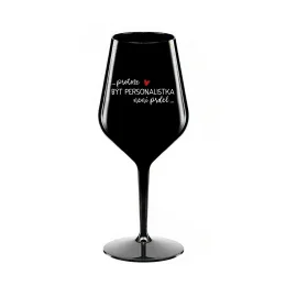 PROTOŽE BÝT PERSONALISTKA NENÍ PRDEL - černá nerozbitná sklenice na víno 470 ml