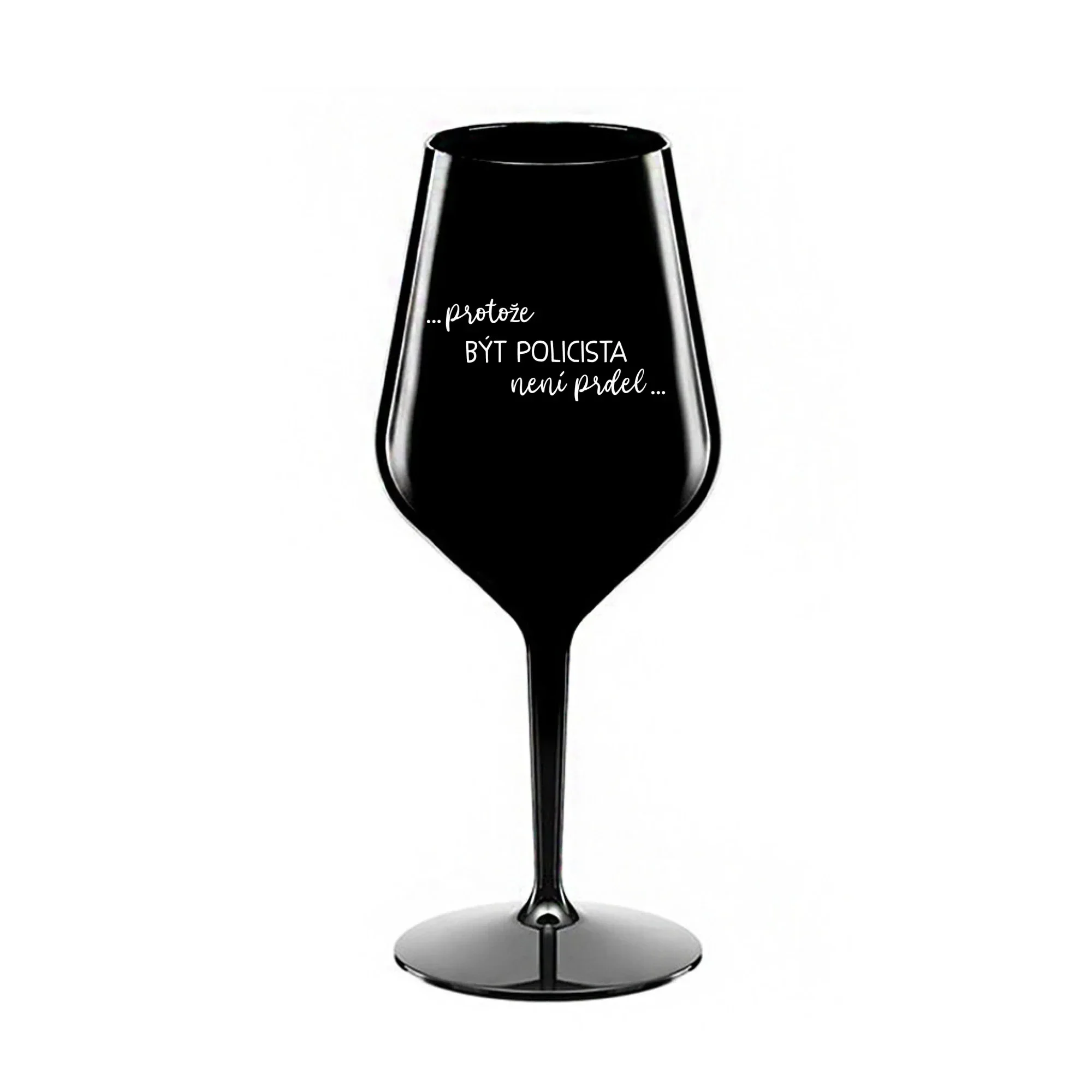 PROTOŽE BÝT POLICISTA NENÍ PRDEL - černá nerozbitná sklenice na víno 470 ml
